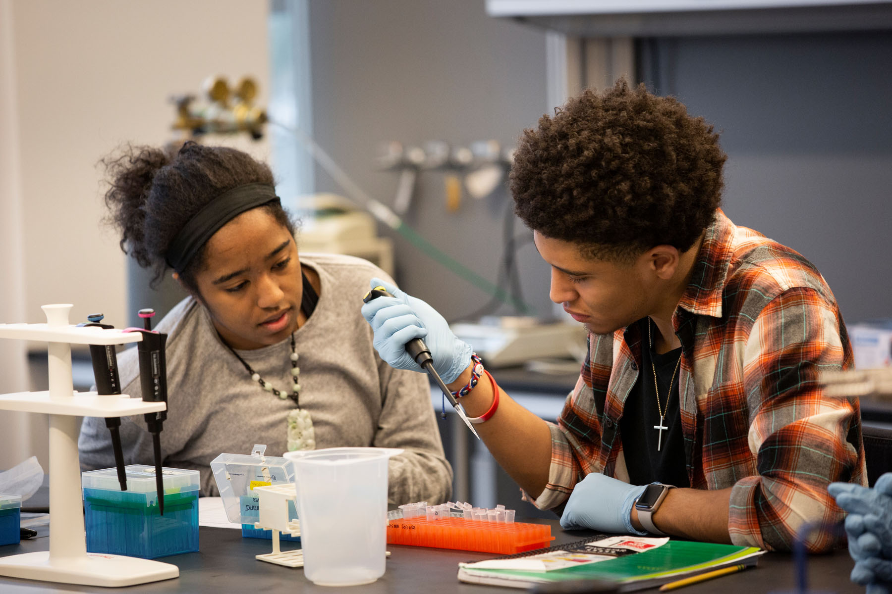 Photo: Students working in the lab during the 2019 Citizen Science Program at Bard College.
