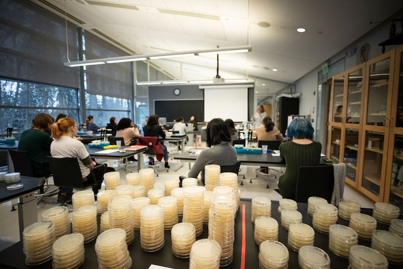 Bard College first-year students collected, plated, and mapped freshwater samples from around the world as part of the 2019 Citizen Science Program. Photo by Pete Mauney '93 MFA '00.